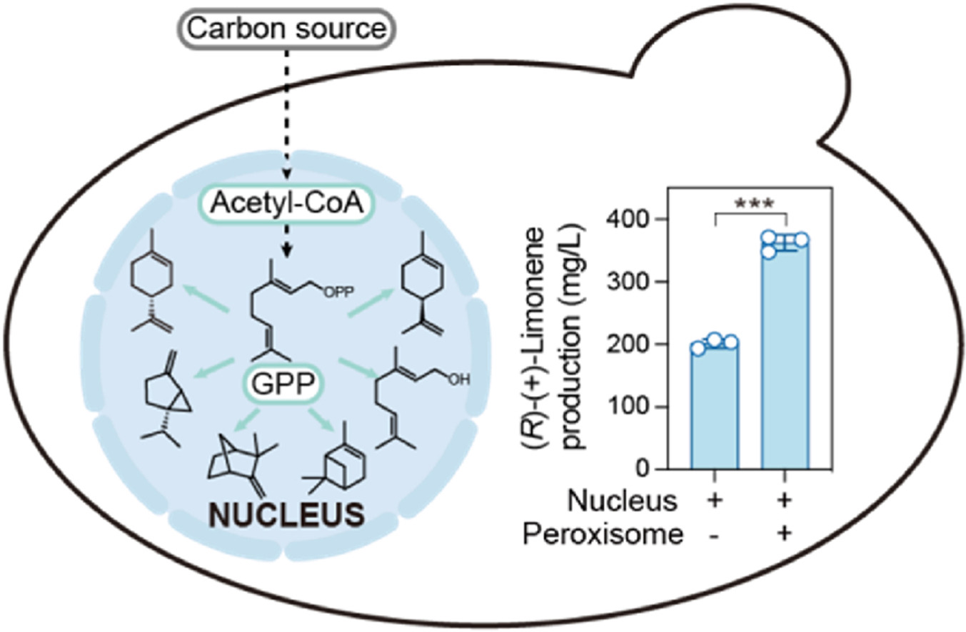 Jing wang 1 2 †, Wenbing Cao 3 †, Zhaohui Zheng 3 †, Yan He 1, Jiliang Deng 1, Xiaocong Lu 1, Junfeng Shen 3, Xiaoyu Yang 4, Yanhui Liu 5, Shi Xiao 1, Tao Yu 3, Hongting Tang 1.Harnessing the yeast nucleus for the efficient production of valuable monoterpenes.Metabolic Engineering,2026,1096-7176.