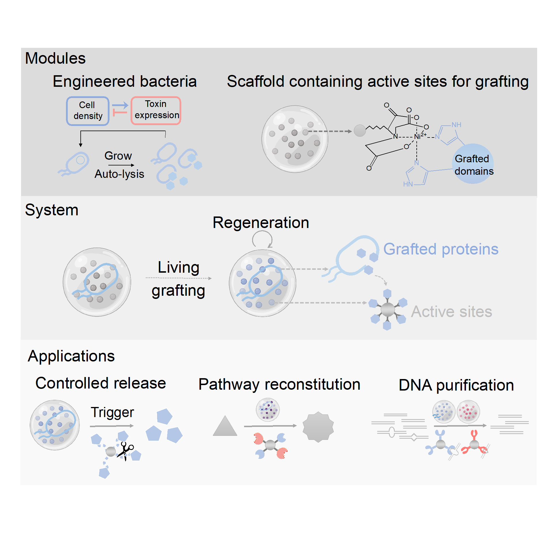 图1. MELG(Materials Engineered by Living Grafting)的模块、系统及下游应用