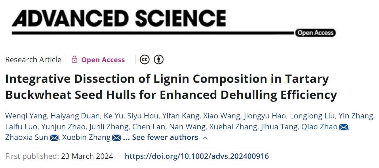 Advanced Science | 张学斌/孙朝霞/赵乔课题组解析苦荞果壳木质素组成的遗传调控机制