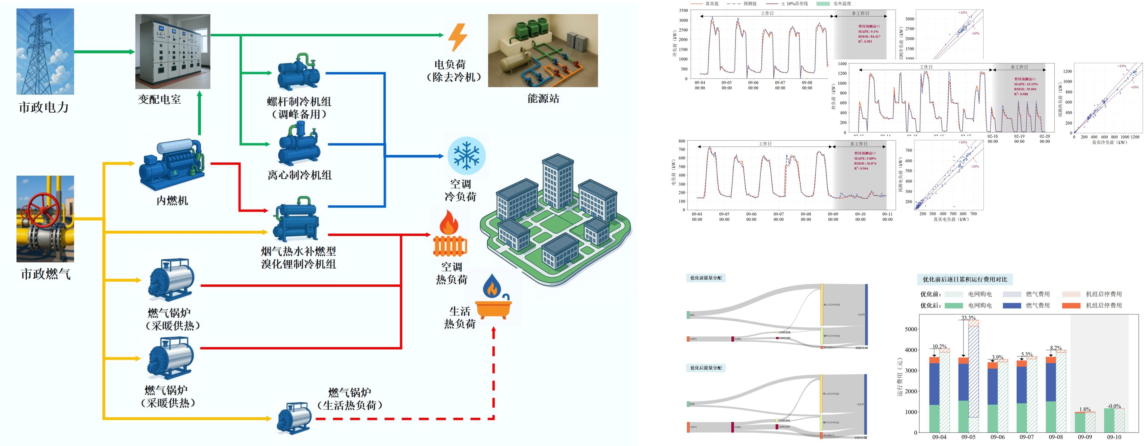 产业园区是支撑经济发展和新型城镇化建设的关键载体,实现其能源系统的零碳化转型,是落实国家 “双碳”战略的重要实践方向。本项目以华润产业园综合能源系统为研究对象,着力打造具有先进性和示范效应的智能能源管控平台。具体研究内容包括:深入挖掘海量历史量测数据,开发融合自监督学习的多类型负荷精准预测方法;构建完备的能源资源设备模型库,集成高效智能求解算法,开发面向多时间尺度的多能协同优化调度模型;搭建高保真全系统动态仿真模型,综合模型预测控制方法、鲁棒优化与智能优化方法,实现系统可调参数的实时动态滚动优化。最终形成以智慧能源管理平台为中枢,贯通设备层智能控制与用户层柔性调节的整体解决方案,全面提升园区能源系统运行效率、精准调控能力及低碳运行水平,引领产业园区能源管理的创新实践。