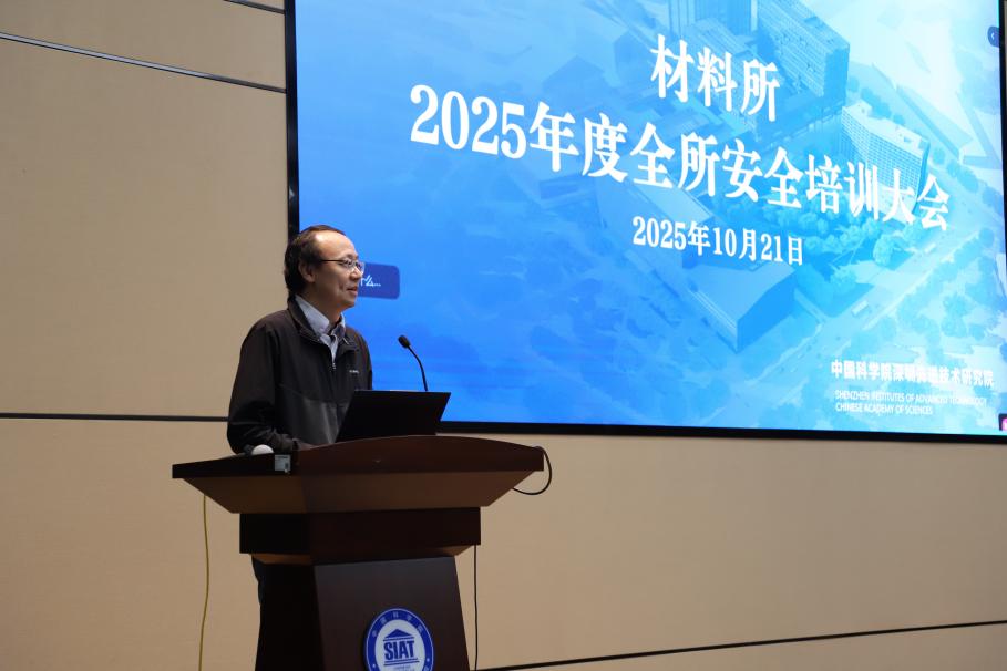 为深入贯彻落实国家、中国科学院及省市关于安全管理工作的部署要求,进一步压实安全责任、强化全员安全意识,中国科学院深圳先进技术研究院(以下简称“深圳先进院”)先进材料科学与工程研究所(以下简称“材料所”)于2025年10月21日下午在A504会议室召开2025年度全所安全培训大会。深圳先进院支撑平台处、综合处相关负责人,材料所领导班子、各中心科研骨干、各层级安全员以及新入职员工与学生共同参会。本次培训大会特别设立宝安材料院分会场,总参与人数近150人。