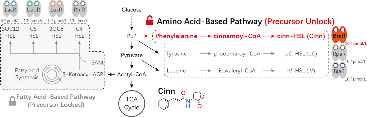 图1 新型高效哺乳细胞胞间通讯信号分子合成通路设计原则